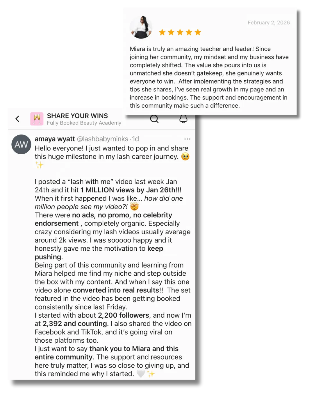 I’m Miara, a beauty entrepreneur and educator who built a multi-stream lash studio rooted in strong clientele, systems, and scalable strategy.